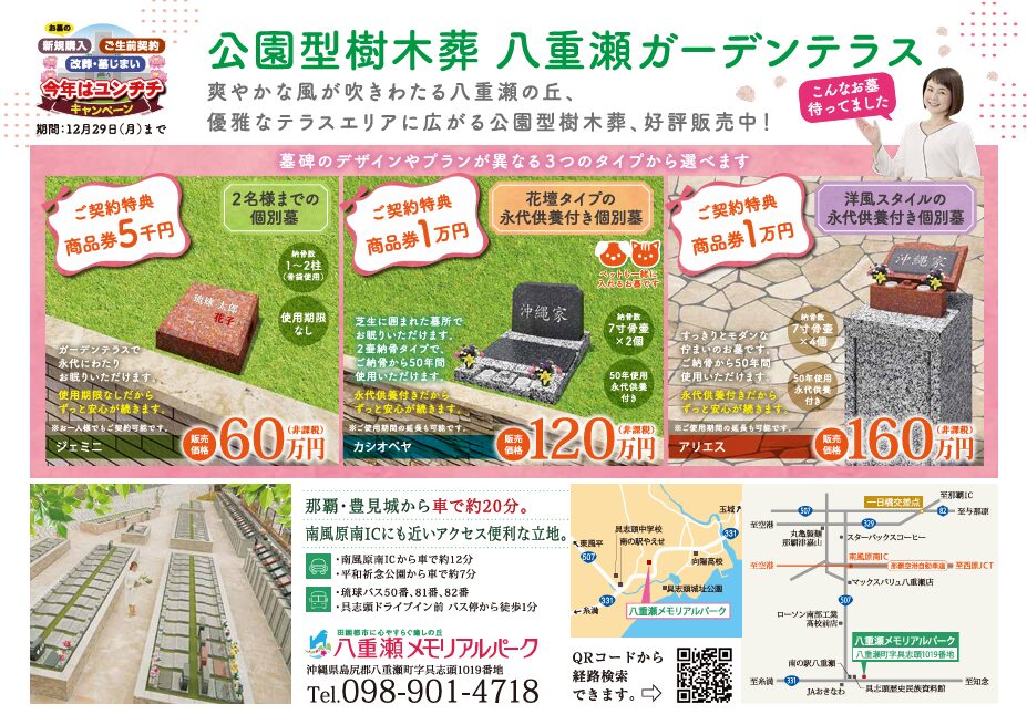 八重瀬メモリアルパークでは12月29日(月)までユンヂチキャンペーンを開催いたします。