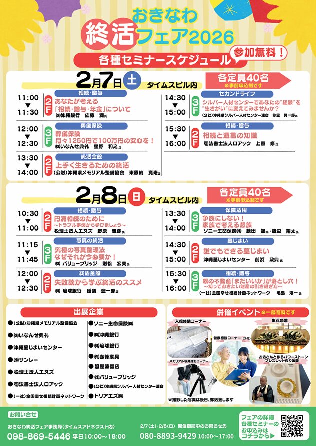 ☎098-869-5446 平日10:00~18:00 (おきなわ終活フェア事務局)