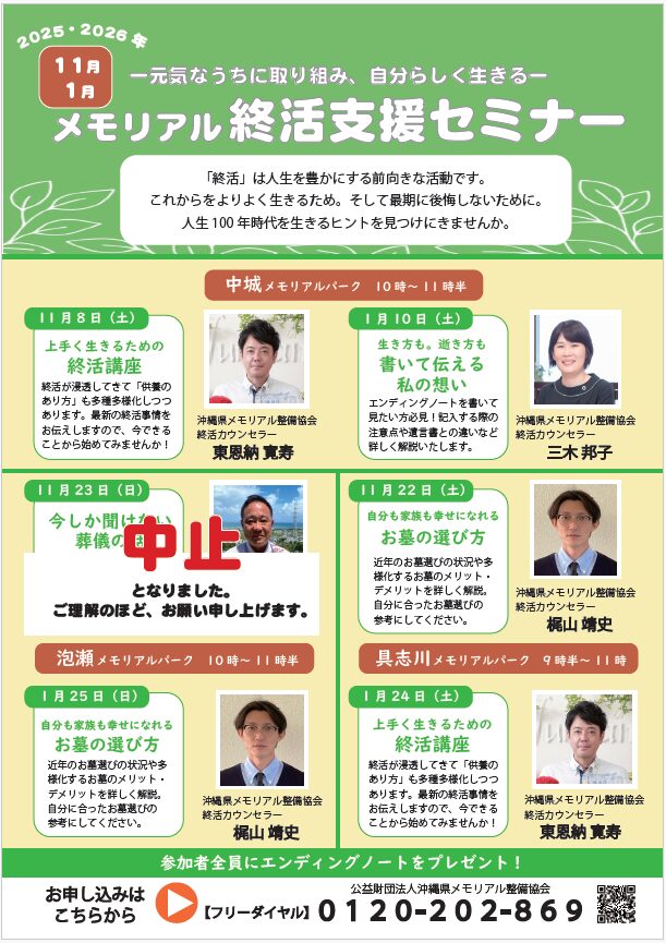 - 平素より各メモリアルパークにご愛顧賜りありがとうございます。 このたび、11月23日(日...